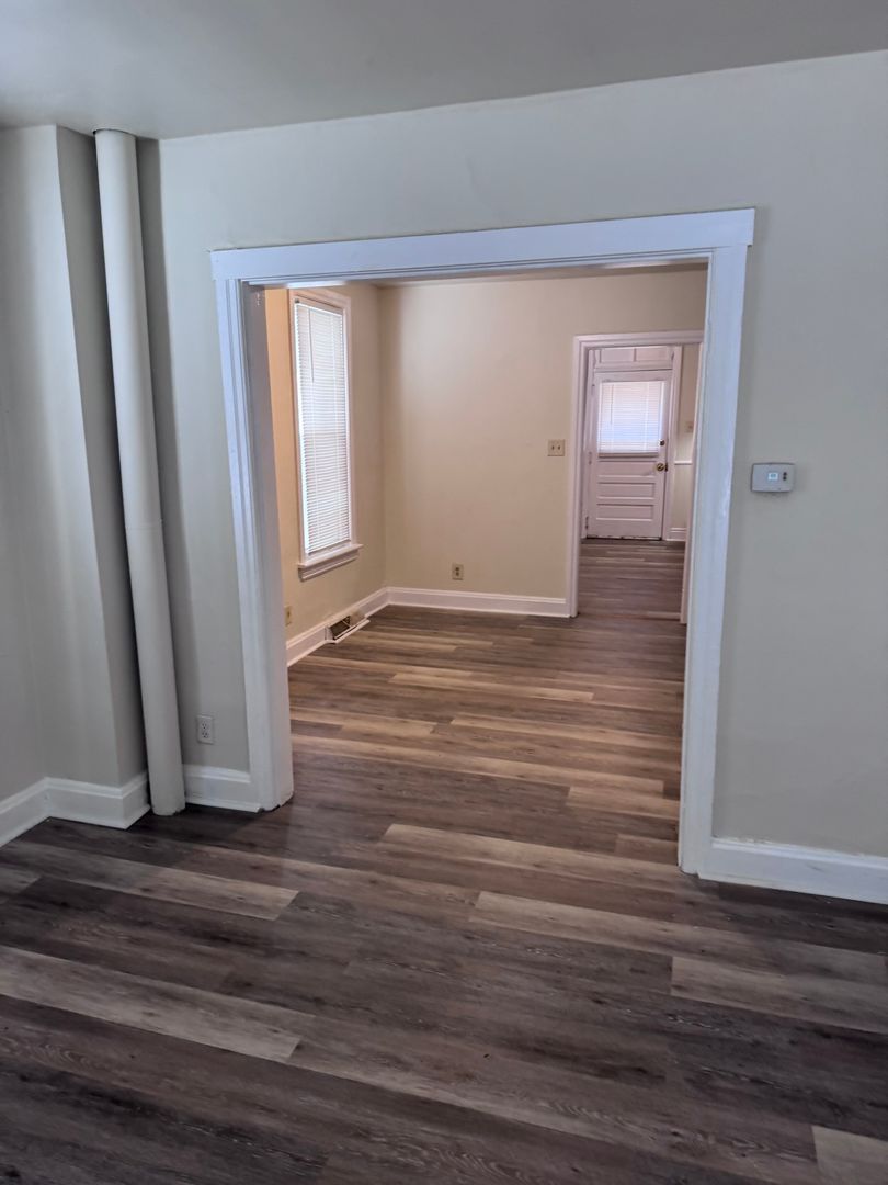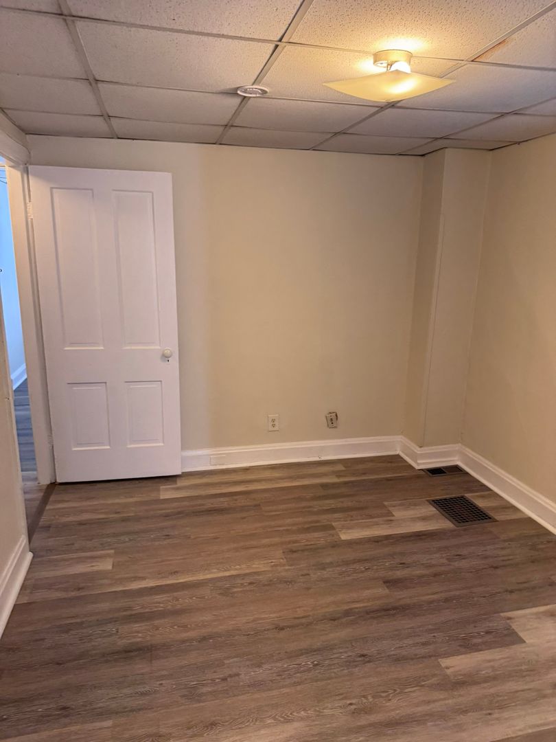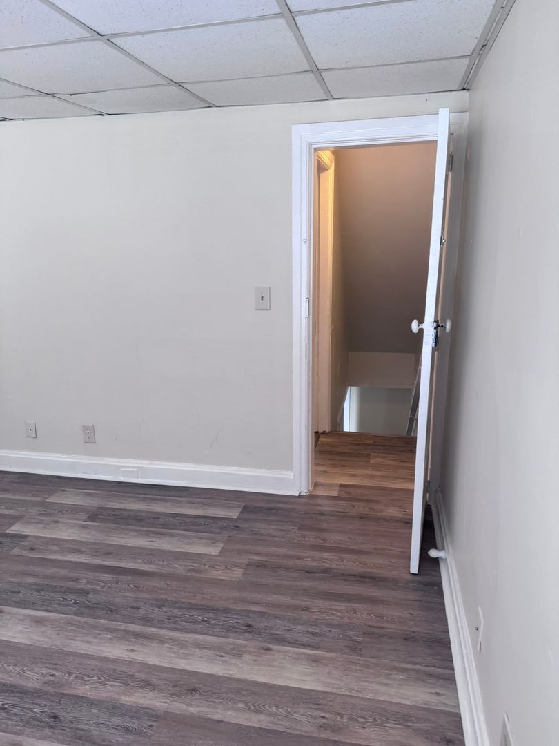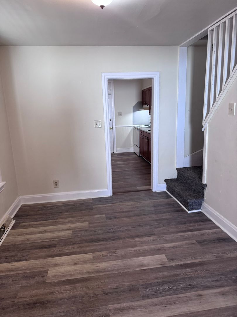 2-3 bedroom (walk thru room on 2nd floor, middle of house that could be used as a bedroom or office), 1 bath 3 story half double, gas heat, tenant pays wst, wd/hu (laundry room off of kitchen), fenced in back yard, bsmt for storage