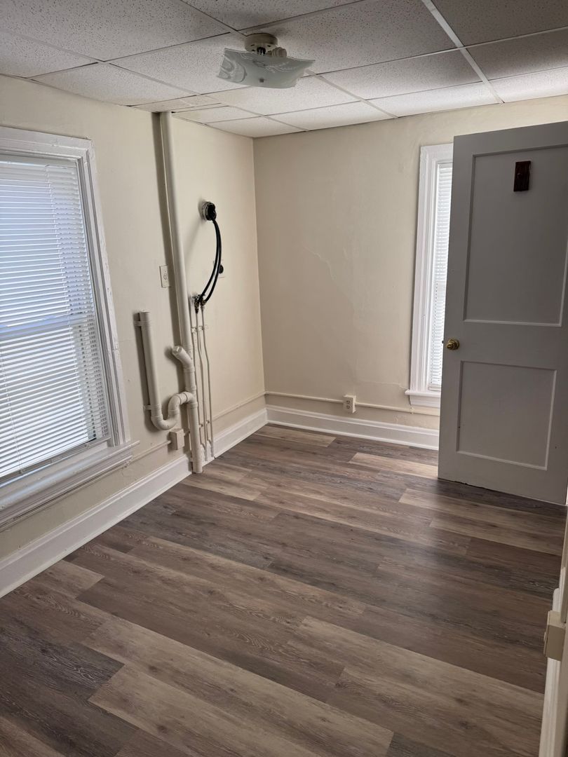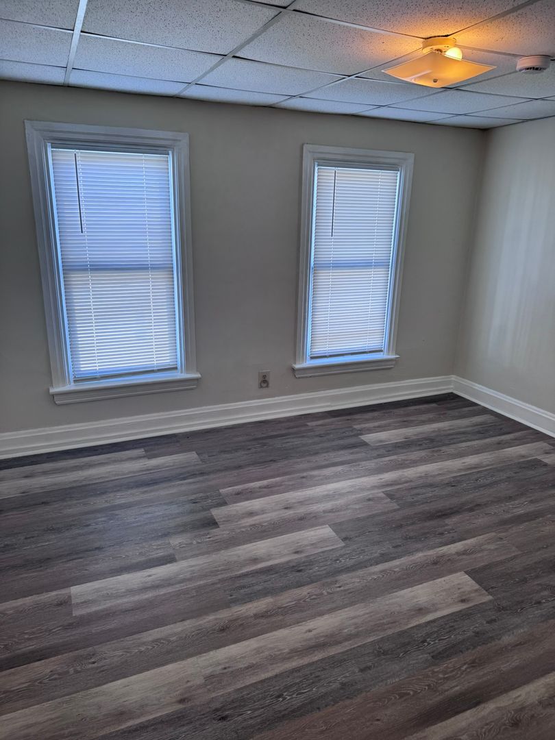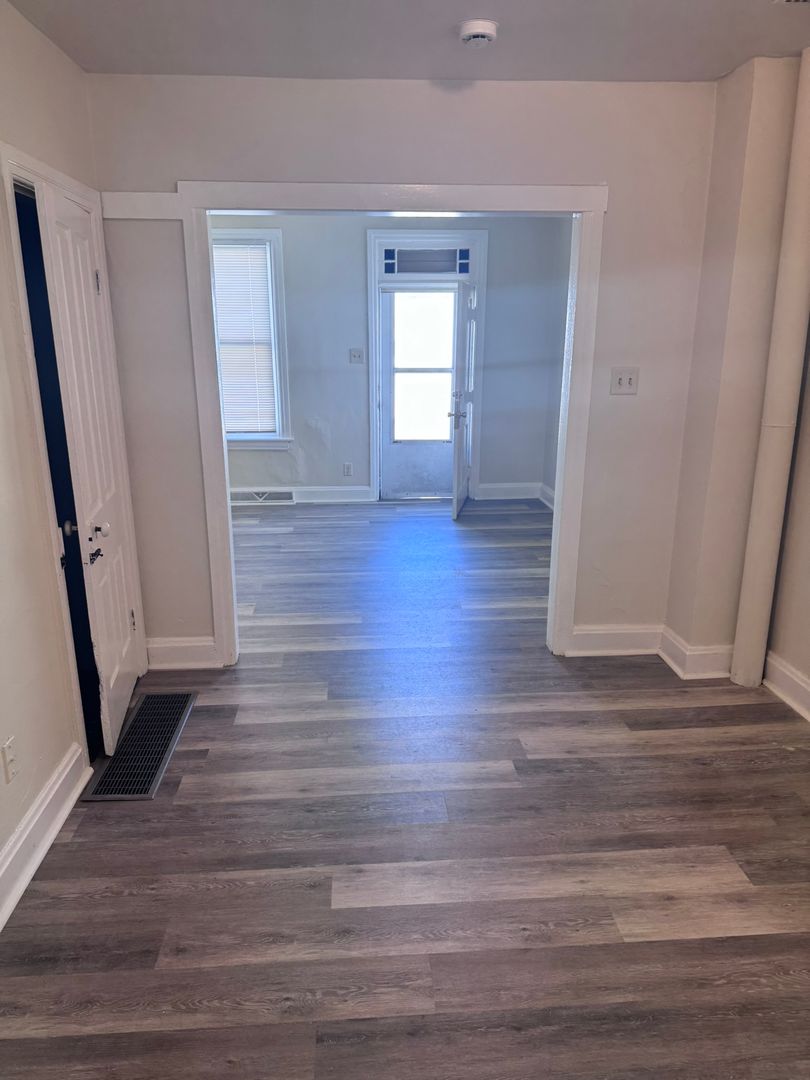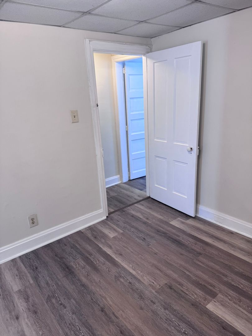 2-3 bedroom (walk thru room on 2nd floor, middle of house that could be used as a bedroom or office), 1 bath 3 story half double, gas heat, tenant pays wst, wd/hu (laundry room off of kitchen), fenced in back yard, bsmt for storage