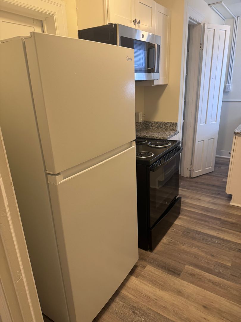 1 bedroom, 1 bath, 2nd floor apartment, electric bb heat, no utilities included, fenced shared yard