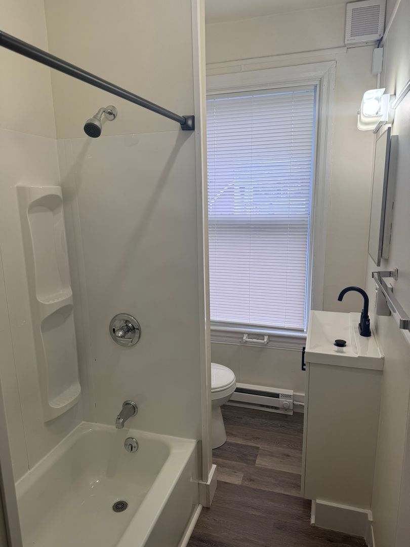1 bedroom, 1 bath, 2nd floor apartment, electric bb heater, no utilities included, shared fenced yard